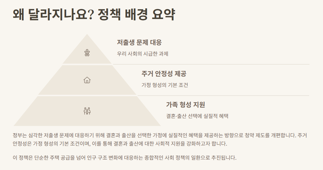 저출생 문제는 우리 사회의 시급한 과제입니다. 정부는 “결혼·출산을 선택한 가정에 실질적인 혜택을 주자”는 취지로 청약 제도 개편을 추진합니다.