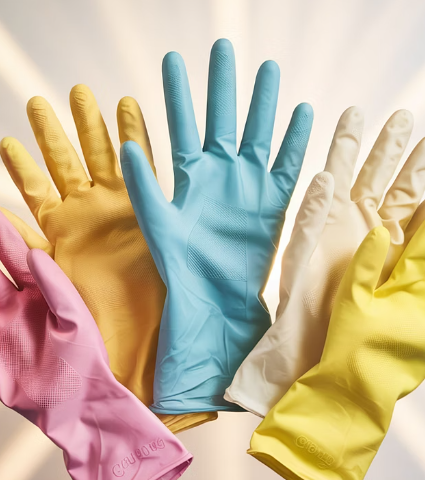 고무장갑은 대부분 천연고무(NR) 또는 합성고무(NBR, 라텍스 등) 소재로 제작되며,