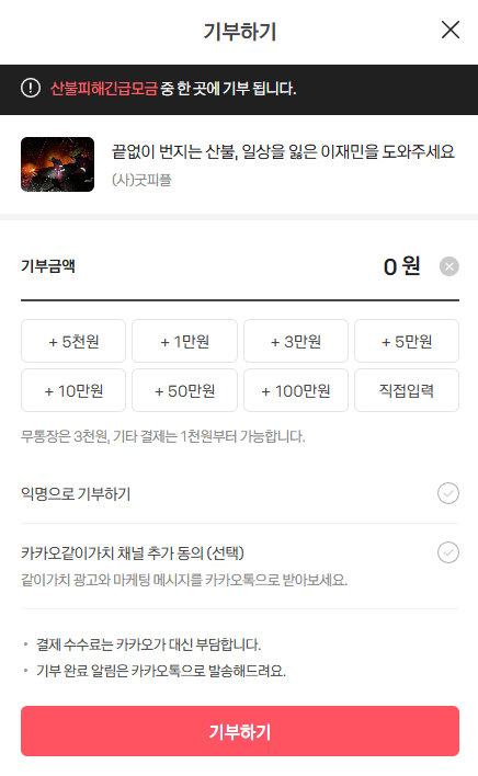 2. 카카오(다음)에서 산불 피해 기부하는 방법
