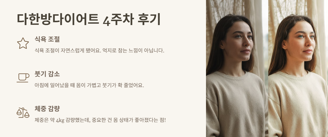 - 식욕 조절이 자연스럽게 됐어요. (억지로 참는 느낌이 아님)