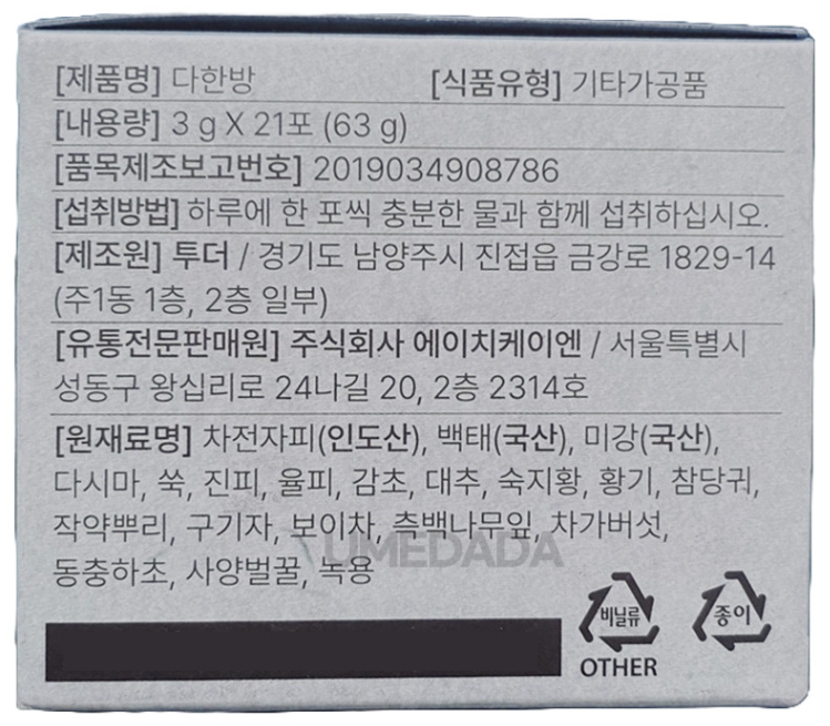 그래서 체질 개선이 필요하다고 생각해서 다한방다이어트를 시작했어요.