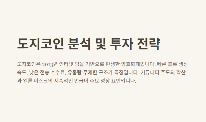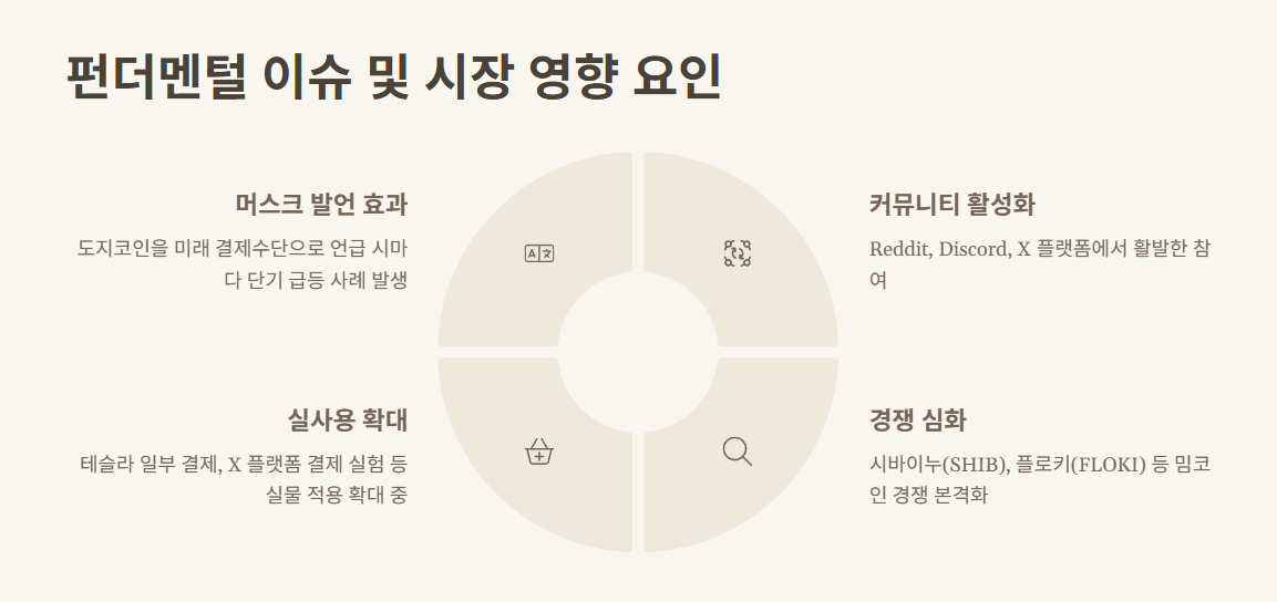 | 머스크의 영향력 | "도지코인은 미래 결제 수단" 발언 이후 10% 이상 급등 사례 다수 |