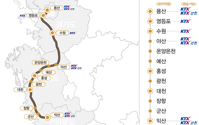 ✅ 주요 정차역: 용산, 영등포, 수원, 천안, 홍성, 대천, 군산, 익산