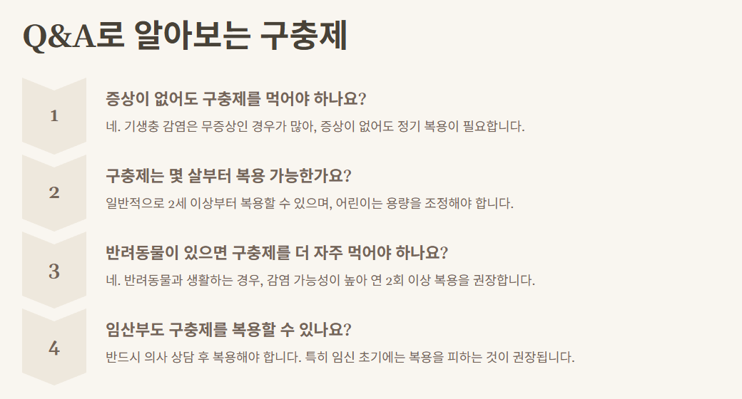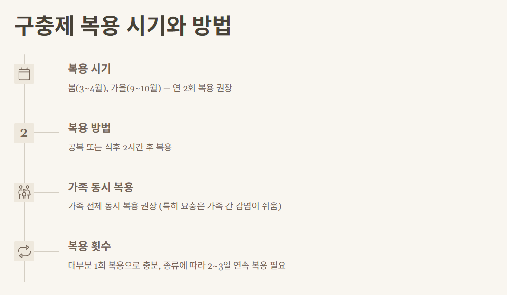 👉 증상이 없어도, 1년에 1~2회 구충제 복용으로 미리 예방하는 것이 안전합니다.