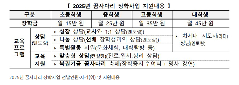 - 지원 대상: 초등학교 5학년부터 고등학교 3학년까지의 학생