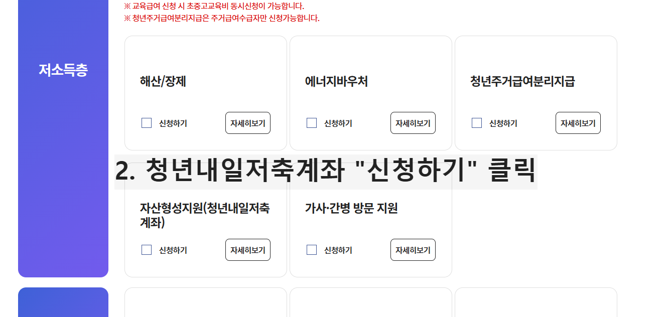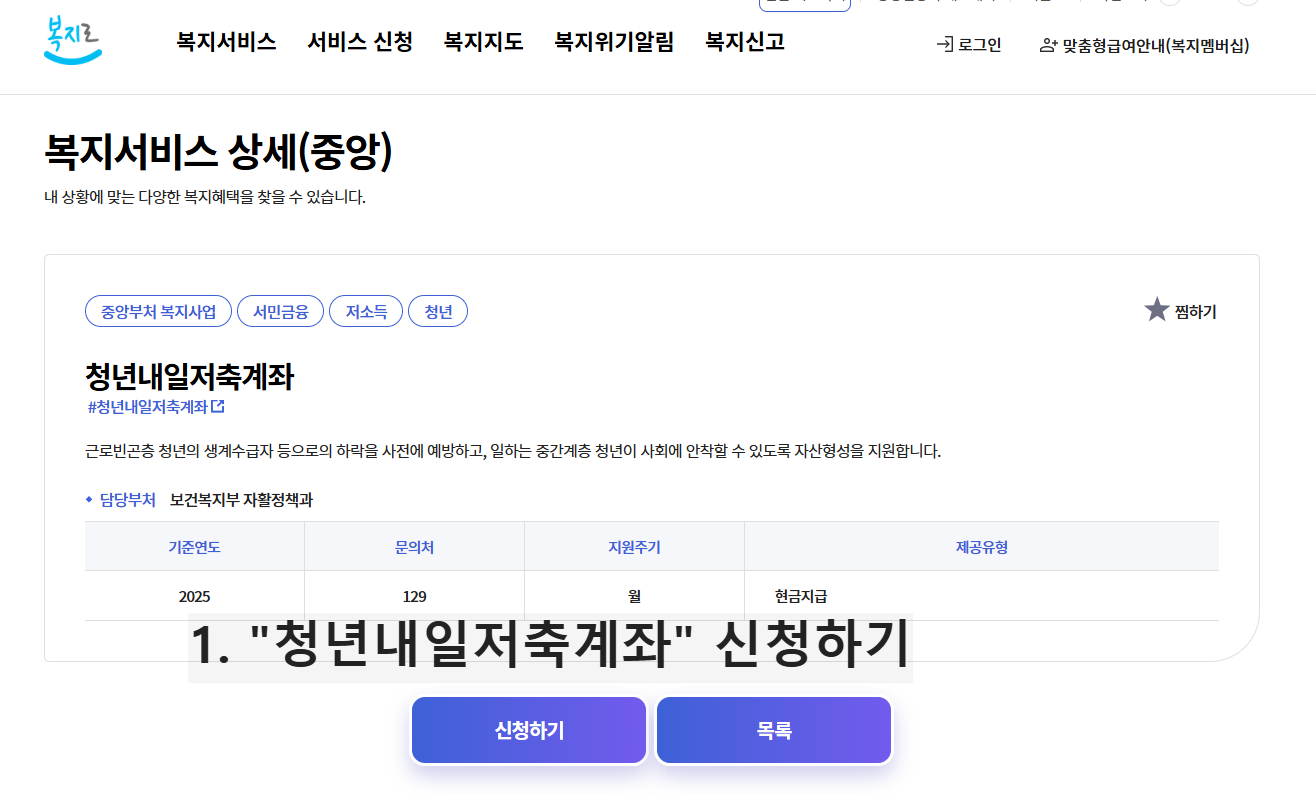 - 복지로 마이페이지 → 청년내일저축계좌 메뉴