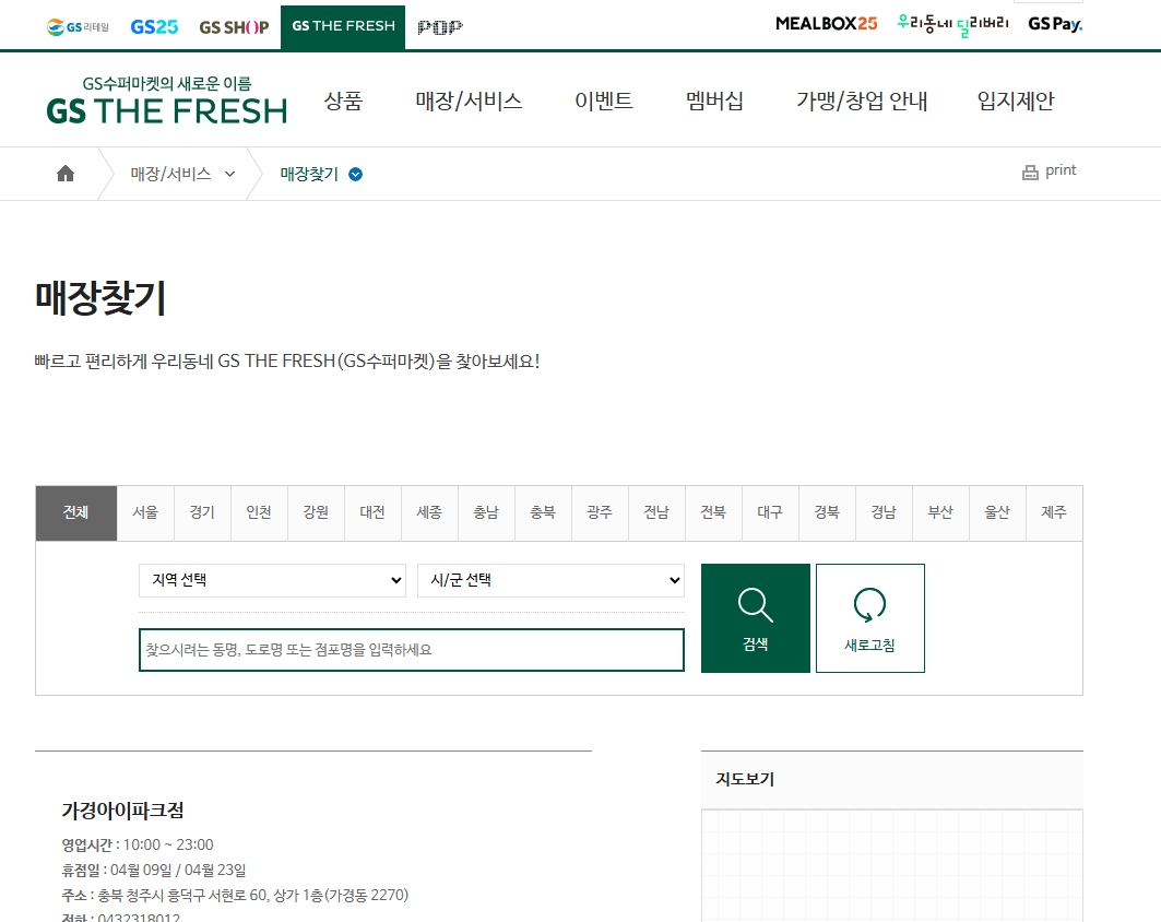 GS더프레시는 GS리테일이 운영하는 슈퍼마켓 브랜드입니다. 전국 곳곳에 위치한 이 마트는 신선 식품과 생활용품, 그리고 합리적인 자체 브랜드 상품까지 폭넓게 제공하며, 특히 동네 밀착형 매장이라는 점에서 소비자와의 접근성이 매우 뛰어납니다.