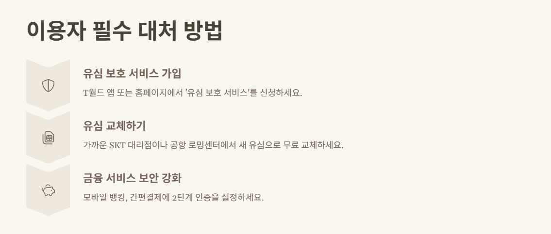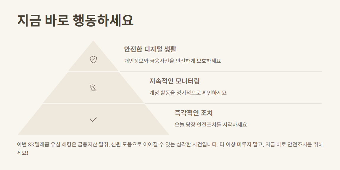 지금 바로 유심 보호 서비스 가입과 유심 교체, 금융 보안 강화를 통해 나와 내 소중한 정보를 지켜야 합니다.